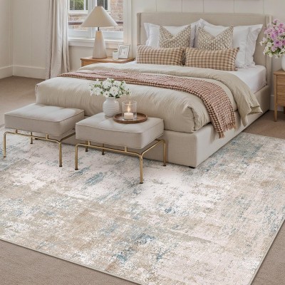 PureCozy Washable Area Rug 200x300cm Beige Blue Neutral Abstract