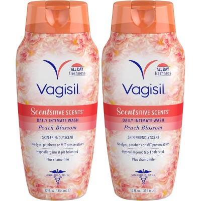 Vagisil Scentsitive Scents Daily Intimate Feminine Vaginal Wash, Peach Blossom, 12 Fluid Ounce (Pack of 2)