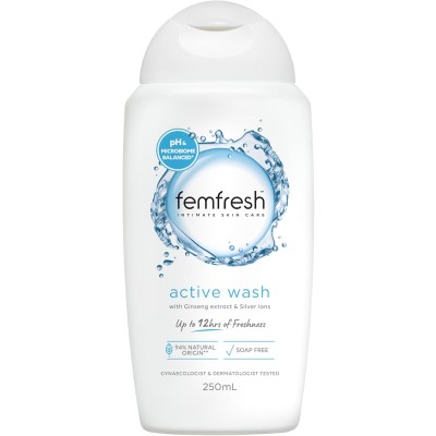 Femfresh Active Intimate Wash 250ml - With Ginseng Extract & Silver-Ion Technology, pH & Microbiome Balanced