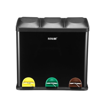 Maxkon 54L Foot Pedal Rubbish Bin Triple Compartment Waste Bin with Lid Stainless Steel Body Kitchen Recycle Trash