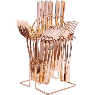 24-Piece Stainless Steel Silverware Set with Hanging Stand, Mirror Polished Flatware Cutlery Set for 6